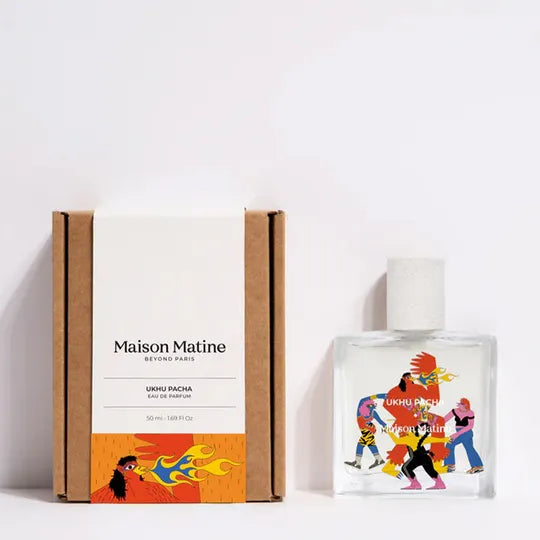 Maison Matine Ukhu Pacha è un profumo che si apre con note di testa di bergamotto italiano, spruzzi di mare salato e cocco. Nel cuore, si intrecciano fiori d'arancio, tuberosa, gelsomino, ylang-ylang e fava tonka brasiliana. Le note di fondo di legno di deriva, pralina e vaniglia offrono una chiusura avvolgente e calda. Questo profumo unisce la freschezza fruttata e floreale con un tocco di dolcezza ambrata, creando
